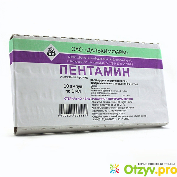 Героем отзыва является препарат Пентамин, который относится к спазмолитическим и ганглиоблокирующим средствам, активным веществом здесь является азаметония бромида в дозировке по 50 мг, выпускается в форме прозрачного раствора для инфузий по 1 или 2 мл в ампулах. Мы не будем вдаваться в подробности фармакологии, посмотрим только что препарат способен не только снижать артериальное давление, но попутно оказывает артериадилатирующее и венодилатирующее действия. А если простыми словами, то активное вещество способно оказывать сосудорасширяющее действие, такие препараты используются для того, чтобы снижать сопротивление, когда сердечный желудочек совершает сокращение, при этом увеличивается физиологическая активность работы желудочка сердца при любой степени его сократимости.