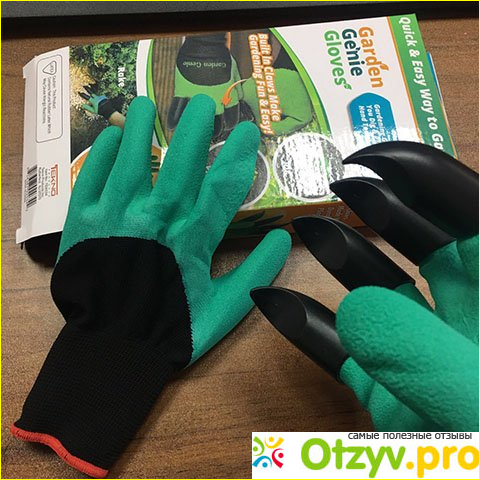 Это обычная перчатка прорезиненная, на праву надеты когти. С помощью их удобно грести землю, не боишься их порвать. Обошлись они мне 140 рублей, дороговато. Но они того стоят.