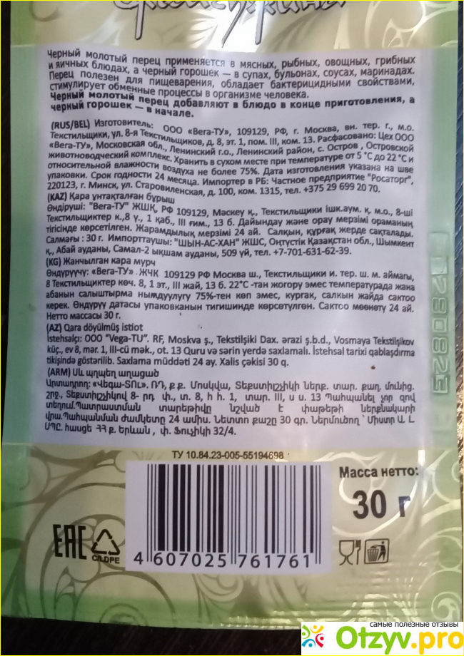 Упаковка черного молотого перца весом 30 гр, например, обошлась мне в пределах 50 рублей, а точнее отдала 45 в обычном магазине у дома.