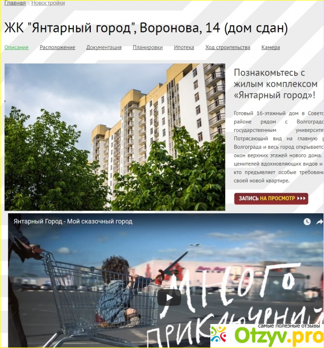 На этой странице размещено достаточно большое количество информации об этом жилом комплексе, а также фотографии и видео. Кроме того, с этой страницы точно также можно записаться на просмотр будущей квартиры.