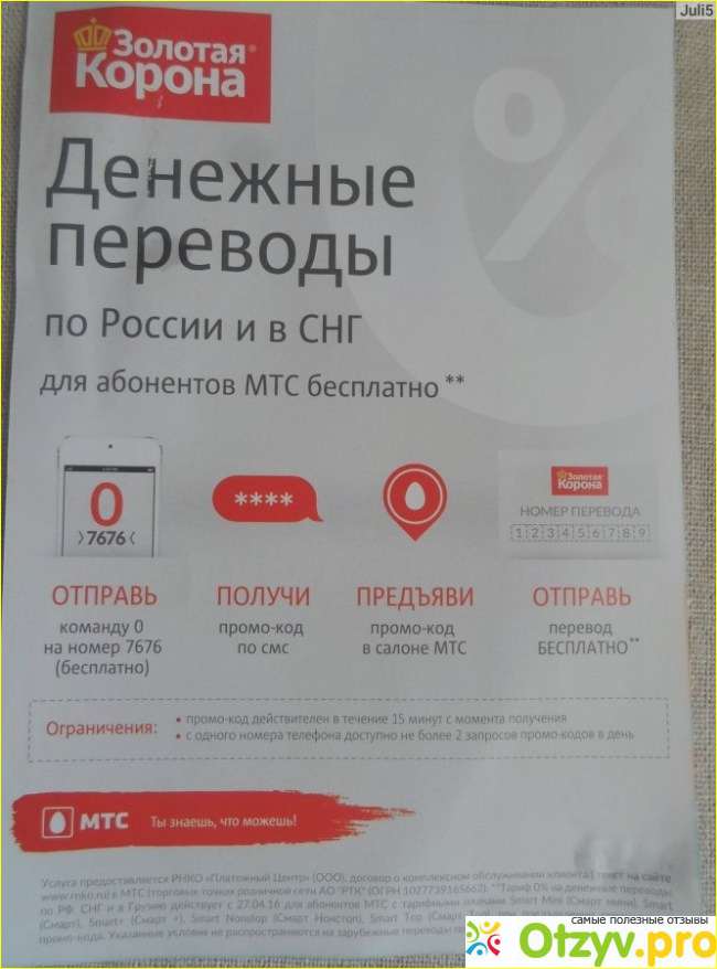 Вместе с картой вам выдадут код, с помощью карты Золотая Корона значительно облегчаются все способы переводов.
