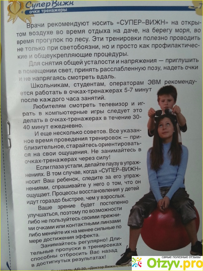 Для примера приведу свой результат: за последние 30 лет зрение не ухудшилось даже на полдиоптрии. Читаю в Супер-Вижн 5 раз в день по 5 минут книгу. НО только в последние лет восемь. Не думаю, что зрение было таким же и в первые 20 лет, уверена, что оно было хуже, но сейчас зрение вполне достойное.