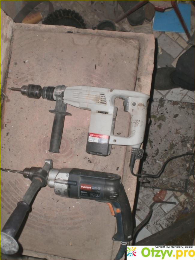 Теперь про минусы. Хотя Интерскол П-20/550ЭР можно использовать как импровизированный шуруповерт, но к сожалению признаю что работать с крепежом не очень удобно. Если вставить патрон через специальный адаптер то получается, что длина перфоратора становится почти как у дрели Фиолент МС8-16РЭ, а дрель сия совсем не маленькая. Купить адаптер для бит с хвостовиком сдс плюс не вариант ибо у Интерскол П-20/550ЭР адаптер особый. Интерсколу неплохо было бы комплектовать этот перфоратор своим битодержателем.