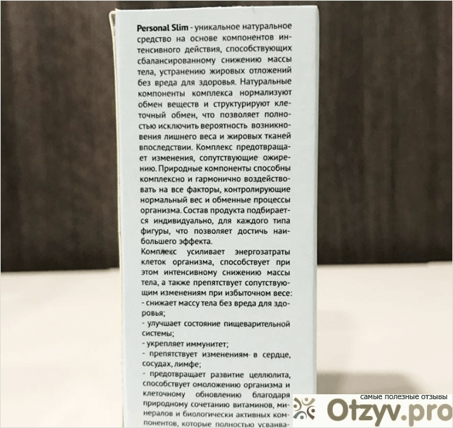 Толку-то от этого явно побольше будет). Вот и я в свое время решила не сидеть сложа руки, надеясь, что лишние сантиметры на талии исчезнут, а жиры рассосутся сами собой. Обратилась я, значит, в врачу. Там я и узнала, что все дело в том, что организм у меня зашлакован из-за неправильного питания, которого я придерживалась большую часть своей жизни. Вот поэтому теперь так просто взять и похудеть не получится. Естественно я должна была сесть на диету, заняться активным спортом (я решила начать ходить на танцы. А что? И польза и удовольствие)). А еще мне посоветовали попробовать попить каких-нибудь биологически активных добавок. Для лекарств предпосылок нет, а вот БАДы могут неплохо так простимулировать организм, наладить обмен веществ, усмирить аппетит (а с этим у меня тоже были проблемы, к несчастью). Да еще и натуральный природный состав компонентов БАДов, в который, как правило, входят большое количество витаминов, минералов и биологически активных веществ. Прочитав многочисленные советы и отзывы, я приняла решение купить и пропить курс препарата «Personal slim». Цена на него средняя по сравнению с другими, более раскрученными БАДами — девятьсот девяносто рублей за упаковку. Зато негативных отзывов почти нет. Большая часть людей отмечает значительную потерю веса уже за первые две недели применения.