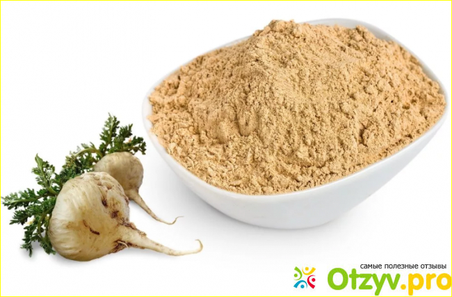 Биологически активная добавка Перуанская мака представляет собой порошок, сделанный из измельченных клубней этого растения.