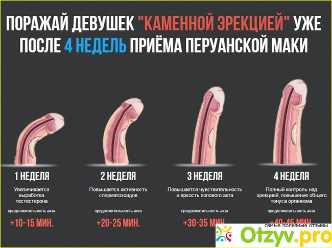 Муж принимал Перуанскую маку за 20-25 минут до полового акта, и как раз появлялась крепкая и сильная эрекция - это препарат так отменно действовал.