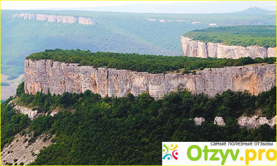 Взобравшись на плато горы Тепе-Кермен, нам открылся чудесный вид на еще одно плато, столовую гору и вершину, на которой находился еще один пещерный город Крыма - Кыз-Кермен.