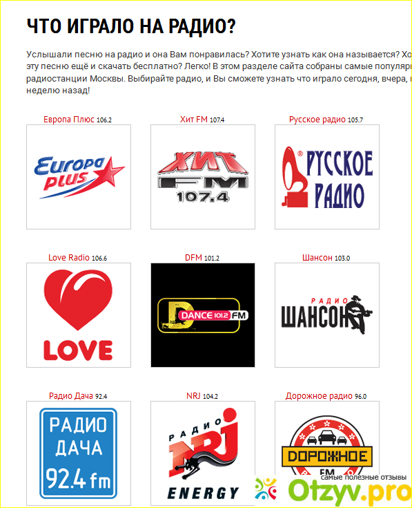7. Что играло на радио (возможность просмотреть, послушать песни которые звучали на различных радиостанциях);