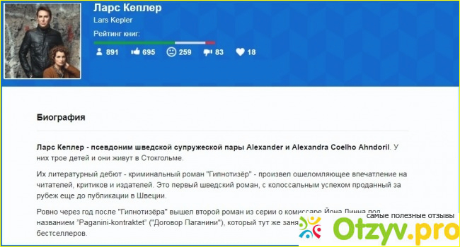 Перед нами очередной детектив от шведской семейной пары, которые придумали себе творческий псевдоним Ларс Кеплер. А на самом деле их зовут Alexander и Alexandra Coelho Andoril. На их счету уже 6 детективных историй.