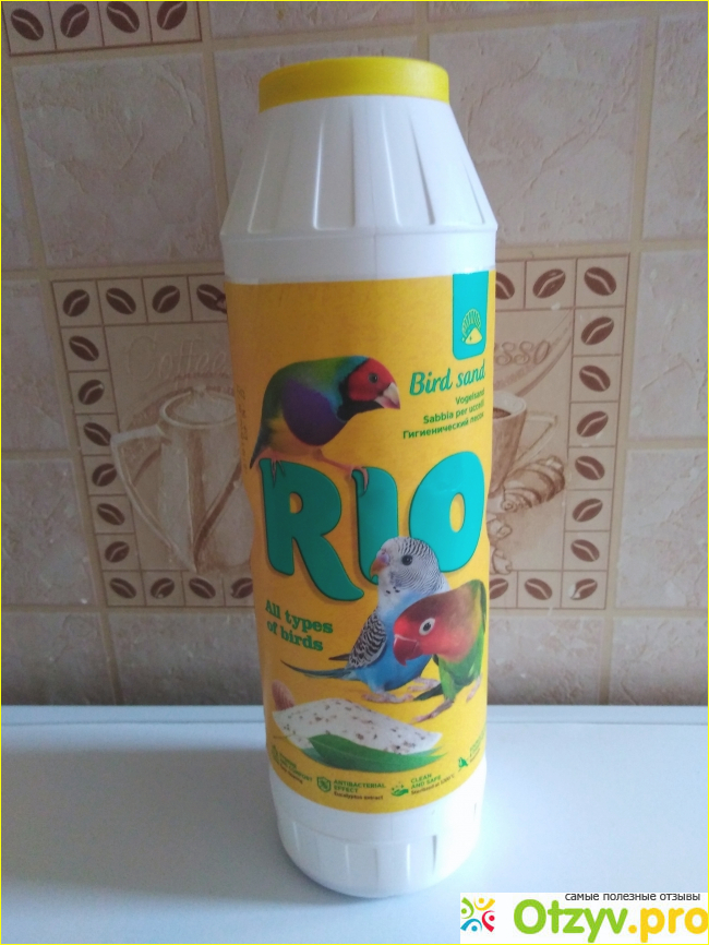 Песочек нужно высыпать на днище клетки с птицами. Для этого в бутылке, имеется 5 круглых отверстий, что очень удобно. Не просыпается мимо и лишнее высыпать сложно.