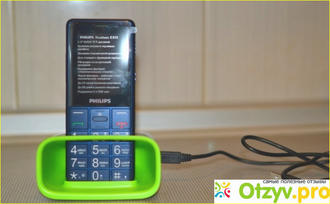 Телефон довольно большого размера, его удобно держать в руке, сделан из нескользкого материала, не выронишь. Заряжать можно его двумя способами – посредством обычного USB кабеля и посредством стильной станции. Станция имеет своеобразное углубление, за счет чего звуквызова будет более сильный. Звонок довольно громкий, его можно слышать находясь далеко в другой комнате или на кухне, если телефон остался валяться где-то на диване.
