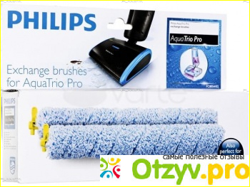 В основной щетке пылесоса стоит две сменных, вращающихся со скоростью шесть тысяч семьсот оборотов в минуту, щетки из микрофибры, которые и выполняют главную задачу пылеса Philips AquaTrio. Меняются насадки при помощи желтеньких зажимов сбоку.