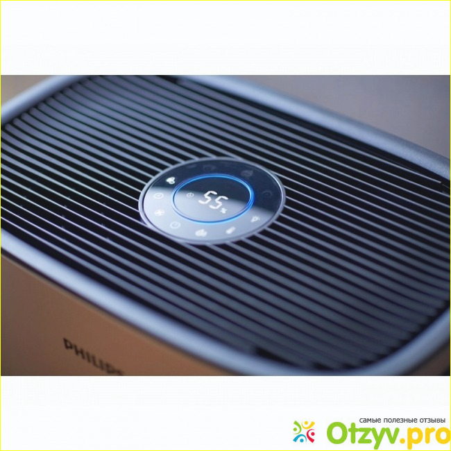 Самое главное прибор контролирует влажность в помещении от сорока до шестидесяти процентов, когда уровень влажности достигается выставленного значения, светодиодное кольцо с цветовой индикацией автоматически меняет цвет с красного на синий, а скорость вентилятора изменяется соответствующим образом.