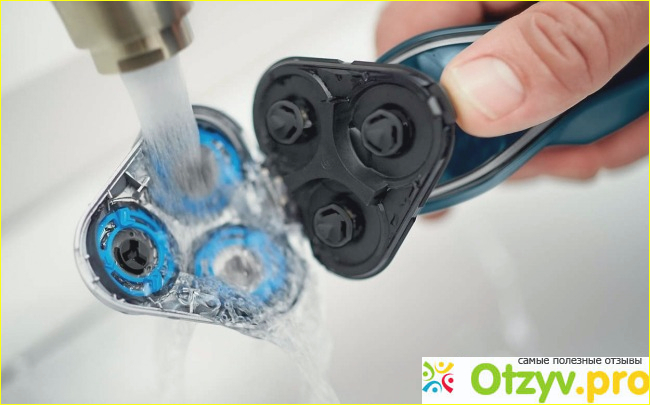 Очистка бритвы очень простая. Достаточно открыть крышку в бритвенными головками и промыть их под краном. Для полной очистки бритвы достаточно нескольких минут и бритва снова готова к работе.