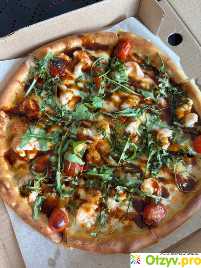 Так что не знаю, когда они там начали готовить и сколько везли. Но везли явно недолго, потому что пицца теплая. Это ощущалось не только во время еды, но и по дну коробки это можно было понять - оно было теплое.