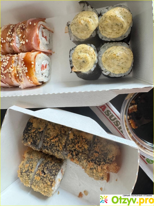 Косяков со стороны доставки не было, по вкусу все вкусно, с виду очень аккуратно и презентабельно.
