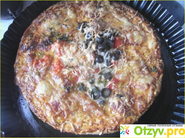 Минусы : Для меня в ней единственный минус что в ней много маслин. Но это лично для меня минус так как я их не люблю. Но в целом они не портят пиццу ничем.