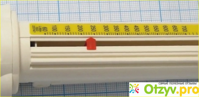 Прибор снабжен заметной разноцветной шкалой, где хорошо видно показатели выдоха.