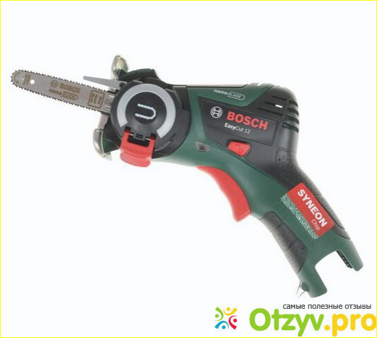 Одним из лучших представителей такого вида электрических мини-пил является инструмент от известного немецкого производителя «Bosch» модель EasyCut 12. Это универсальный аппарат для домашнего применения, который имеет множество достоинств. Прежде всего стоит учесть, что на эту пилу производитель дает гарантию 2 года. Изготавливается мини-пила в Европе, а точнее в Венгрии. Она относится к разряду электрических цепных пил с шагом цепи 9.3 мм. У неё небольшой, приемлемый уровень шума, который равняется 86 децибелам. Аккумуляторная батарея устанавливается литий-ионная с напряжением 12 В. Двигатель имеет скорость вращения вала 4100 оборотов в минуту. Пила снабжена удобной, прорезиненной рукояткой. Весит данный инструмент 900 грамм. В комплект поставки помимо самой пилы входит прозрачный защитный чехол, пильная цепь, петля для хранения и документация.