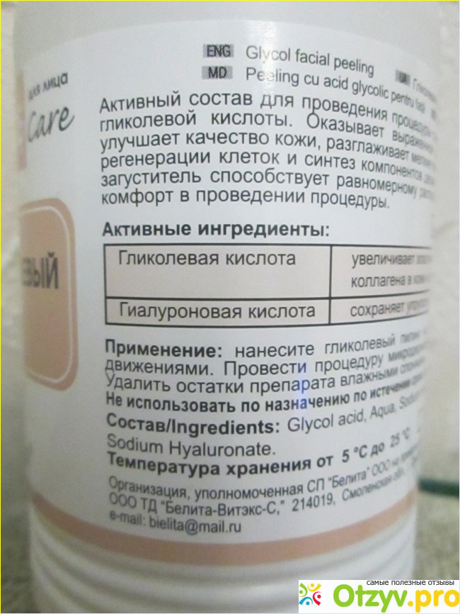Пилинг гликолевый Bielita-Вiтэкс pH 2,5. НО! Увлекаться им не советую, т. к. судя по эффекту средство действительно довольно сильное и сжечь им кожу довольно не трудно. Потому все хорошо в меру. Если уже вам жаль неиспользованного средства - используйте его на менее чувствительные части тела - ноги, руки, локти, колени и т. д.