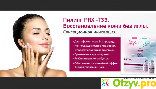 Пилинг prx-t33 - это химический пилинг, который активно используется в целях омоложения кожи. Производителем является Италия. Омоложение кожи происходит за счет выравнивания общего тона лица, уменьшения глубины пор, удаления застойных и пигментных пятен. В целом вид после процедуры становится более свежим, кожа кажется мягкой и упругой. Женщина словно обновляется.