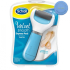 Пилка Scholl имеет сине-белую расцветку. Сам прибор состоит из ручки, в которой расположены батарейки, жесткого чистящего абразивного ролика черного цвета, который вращается и кнопки-полоски включения. Сбоку на головке прибора находятся кнопки для снятия ролика. Абразивная часть защищена прочной пластиковой крышкой. Весит пилка немного – чуть более двухсот грамм. Длина ручки шестнадцать с половиной сантиметров.