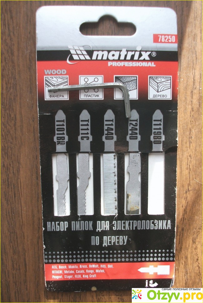 Набор был куплен для ремонта деревенского забора, чтобы не ширкать штакетник ножовкой. Пилки можно купить как поштучно, так и набором, как в моем случае. Есть наборы, в состав которых входят все пилки одинаковые. Есть наборы с разными пилками в наборе, как этот. В составе этого набора, 78250, 5 разных пилок, упакованных в картонный стикер. Стоит такой набор 150 руб. Надо сказать, с задачей он справился полностью. Была сломана одна пилка примерно на 15 метров забора, и то по собственной неаккуратности - самая крупная - Т244D. Так что брать такие пилки можно, с учётом вышесказанного.