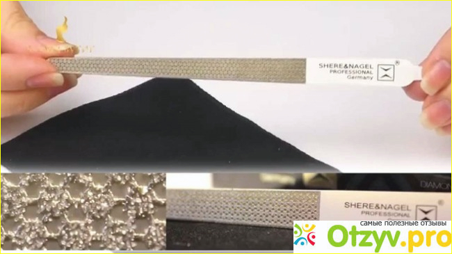 Такая пилка является профессиональной, она представляет собой металлическую пластину, которая очень пластична и гибкая, и именно благодаря этому отпиливание кутикулы будет более эффективное и аккуратное. На ней есть алмазное напыление, что позволяет кожу, которая ороговела очень хорошо удалить. Это очень удобная и безопасная пилка.