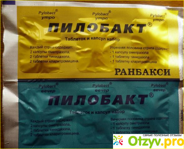 В наборе - две капсулы омепразола и по две таблетки тинидазола и кларитромицина.