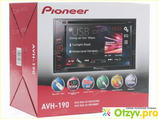 Меню имеет достаточно простой и понятный интерфейс в красно - черно стиле, смотрится просто и стильно. Экран с соотношением сторон 16:9, разрешения вполне хватает для показа хорошего изображения, зернистости не заметно, но нажатия на экран тугие, человек, привыкший пользоваться смартфоном может почувствовать неудобство. Также стекло у экрана скорее всего пластиковое и шершавое, когда проводишь пальцем немного не приятно, нет привычного скольжения. Еще хочу сказать, что на ярком солнце экран блекнет, с одной стороны вроде бы и ничего, я в машине еду и мне как водителю фильмы или клипы смотреть ни к чему, с другой стороны, управление сенсорное, хотелось бы видеть куда и на что жму и отвлекаться на «слепой» экран за рулем не очень хотелось бы. В общем, получается, что экран используется на все 100% только на стоянке или при ожидании в автомобиле. Конечно платить за это лишние деньги не очень хочется. Звук центра чистый и мощный, максимальная выходная мощность MOSFET 50Вт x 4. При половинной громкости звук начинает реально долбить по ушам, а штатные колонки грозятся выпрыгнуть из своих посадочных мест. Настроек эквалайзера много, есть уже преднастроенные, можно настроить еще два собственных набора. Что же касается басов у данного центра, то они в нем есть, басы «долбит» знатно, но именно «долбит», а мне более по душе такой вот «мягкий» бас. К сожалению этот мультимедийный центр «мягким» басом не обладает, резковат он как по мне, устанешь его слушать пять-шесть часов подряд, резок очень, грубоват что ли. Но.. Бывает так, что к моему дому летом подъезжает авто, врубает музыку и у мене на четырнадцатом этаже начинают позвякивать рюмки на полке. Так вот, для таких «слухачей» этот бас вполне подойдет. В итоге хочу сказать, что мультимедийный центр Pioneer AVH-190 в принципе достаточно нормальное современное устройство начального уровня формата 2din, хотя звезд с неба и не хватает, но имеет цену выше среднего и часть функций, которые могут быть никогда не востребованы (например, экран — фильмы в дороге в движении водитель вряд ли будет смотреть, а на длительное стоянке — вряд ли будет жить в автомобиле, чтобы смотреть контент на экране чуть более 6 дюймов). Кроме того, USB сзади, отсутствующие пульт ДУ и адаптер для кнопок на руль, почему-то нет Bluetooth’а — все это наталкивает на мысль о необходимости выбора другой модели другого производителя за те же самые 12000 рублей.