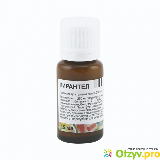 Во флаконе 15 миллиграммов средства, основное действующее лекарственное вещество — это пирантела эмбонат. Кроме этого, имеются разные вспомогательные вещества.