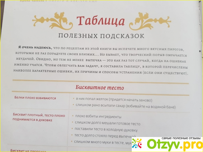 Еще очень полезный раздел в конце книги "Таблица полезных подсказок", где собраны типичные проблемы, которые могут возникнуть в процессе готовки, рассказано о причинах их возникновения и способах решения ситуации.