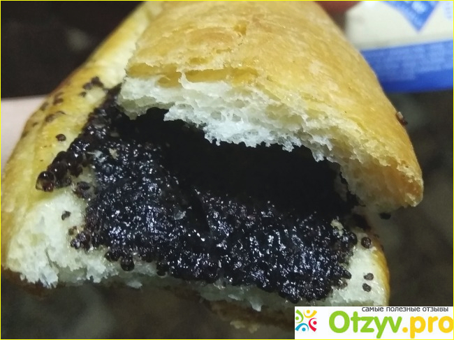 Тесто немного плотное, чуть смахивает на слоёное, или гибрид слоёного с обычным сдобным, как-то так, нет воздушности. Но оно сладкое и всё равно вкусное. Мак очень приятный. А бывают ещё с повидлом (по 18 рублей, по-моему).