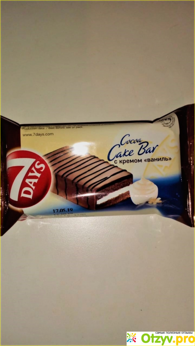 Не обращая внимания на состав вредный или не вредный часто покупаю Бисквитное пирожное 7 DAYS Cake Bar с кремом ваниль, массой 35 г.