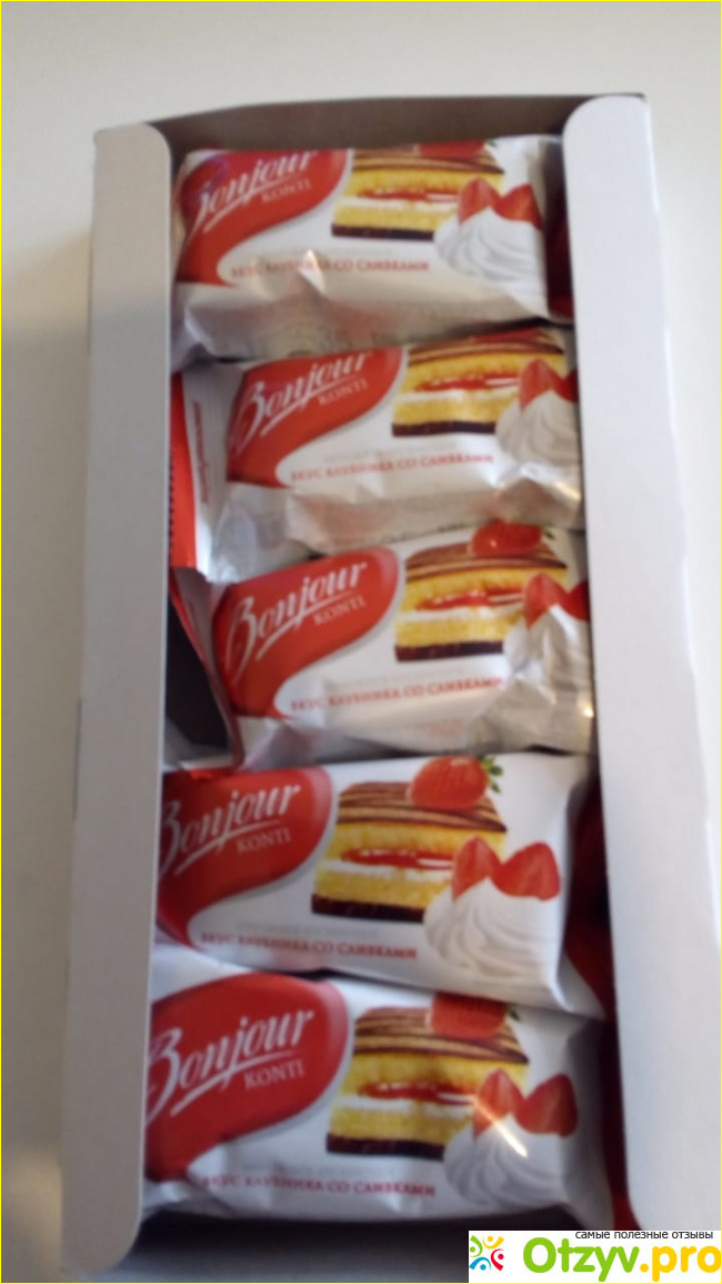 В упаковке находятся 5 штук пирожных и каждая обвернута в индивидуальную упаковку и которые удобно брать в руки. Все продумано до оригинальности.
