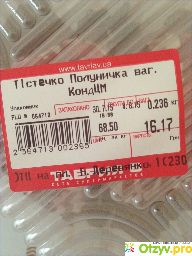 Мой очередной отзыв опять о вкусняшках. На сей раз проведу обзор пирожных, продаваемых в сети ТЦ Таврия В. Сейчас речь пойдет о пирожном "Клубничка".