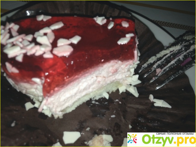 В низу маленькой высоты бисквит, затем крем, нежнейший по вкусу, похожий больше на внутренню часть свежайшего зефира. И верхняя часть желе, простоватое по вкусу, явно не клубничное и мало сладкое. Но все вместе получается очень вкусно. Жаль, что нет кусочков ягод, хотя по фото кажется, что кусочки ягодок есть, это не так, кусочков ягод нет, только косточки от клубники иногда похрустывают.