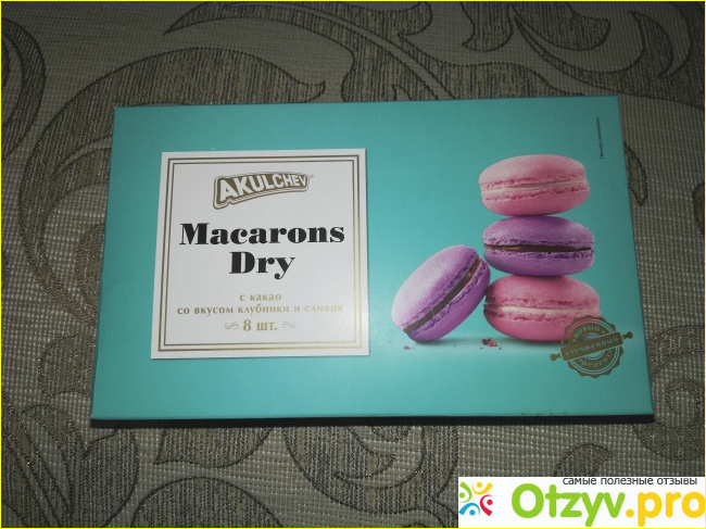 Из любопытства купила набор пирожных миндальных Akulchev, как написано на упаковке - макаруны. Я пробовала макаруны в кофейне, особого впечатления они на меня не произвели, а вот сыну пришлись по вкусу.
