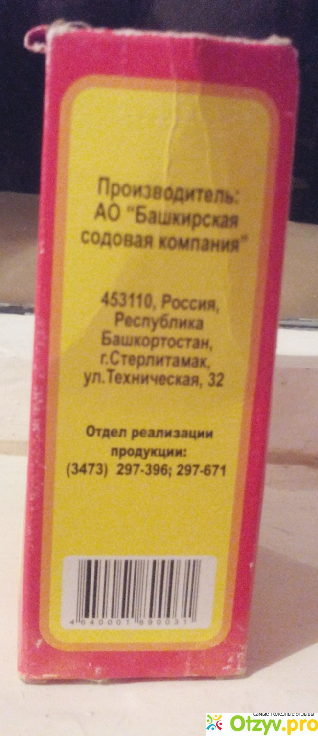 Я даже, несмотря на то, что эту картонную пачку приходится у себя на кухне видеть каждый день, видимо уже настолько привыкнув, не замечаю, что произведена она в Башкирии! Но вот то, что это натрий двууглекислый, бросается с надписи на коробке на глаза почти постоянно!