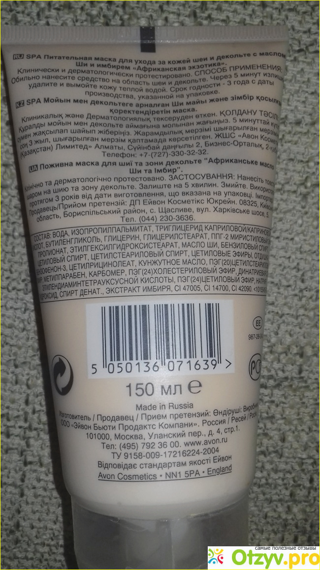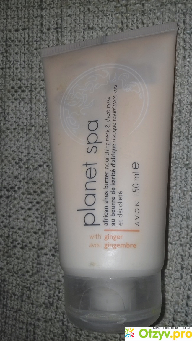 Как известно кожа шеи и декольте нуждаются в не меньшем уходе, чем кожа лица, а может быть, учитывая известную мудрость, что "шея выдает возраст женщины", в еще и большем. Я стараюсь это не забывать и побаловать свою шейку различными маслами, кремами и масками. Вот, мое очередное приобретение, Питательная маска для ухода за кожей шеи и декольте с маслом Ши и имбирем "Африканская экзотика" из моей любимой серии Planet SPA от всем известного торгового бренда Avon.