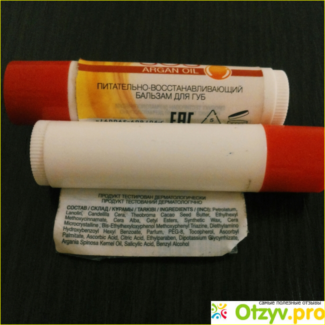 Что касается состава рассматриваемого продукт, то в составе бальзама много всего интересного - аргановое масло, масло какао, витамины Е и С. подробнее можно изучить ниже.