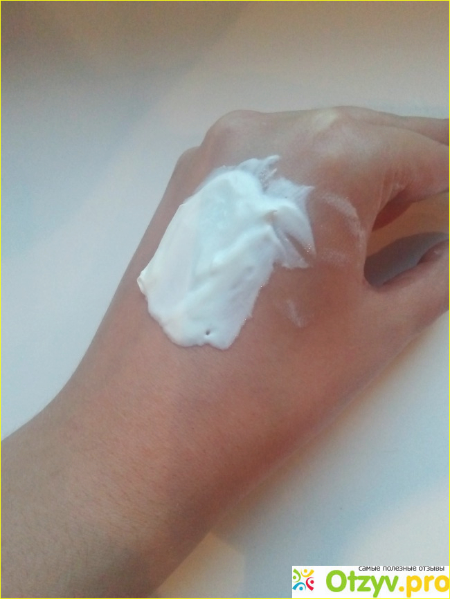 Крем имеет белый цвет с желтоватым оттенком, как у деревенской сметаны. Да он вообще как деревенская сметана, даже по консистенции. На вид он густющий, очень жирный. Не смотря на жирную консистенцию он проблемно распределяется по коже тела. Он не размазывается, а кое как втирается, к этому нужно приложить силу, у меня обычно кожа краснеет.