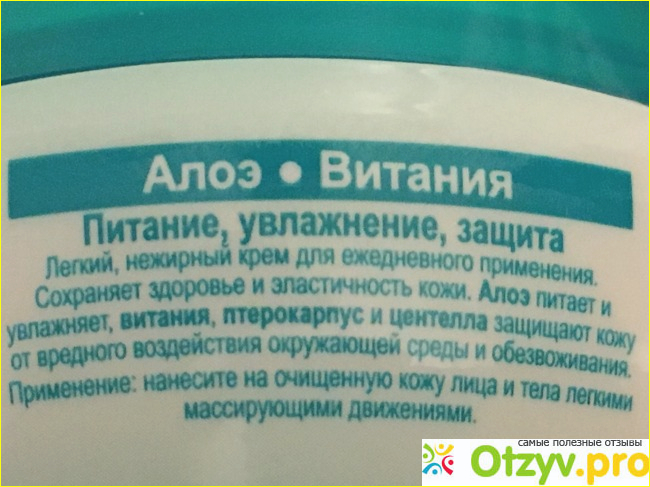 На баночке размещена информация о действующих веществах крема и его воздействии на кожу: