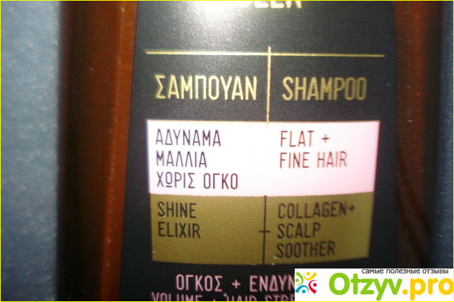 На упаковке написано - гладкие ровные волосы, содержит коллаген и успокаивает кожу головы. В общем, все так и есть.