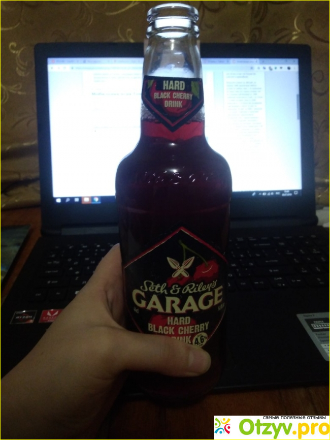 Цвет прямо такой насыщенно бордовый, как будто и правда из темной вишни сделали. В составе на самом деле присутствует вишневый сок. Дизайн бутылки соответствует стандартам "Гаража". Ничего особенного, но и не это ведь в алкоголе главное. Фото прилагаю: