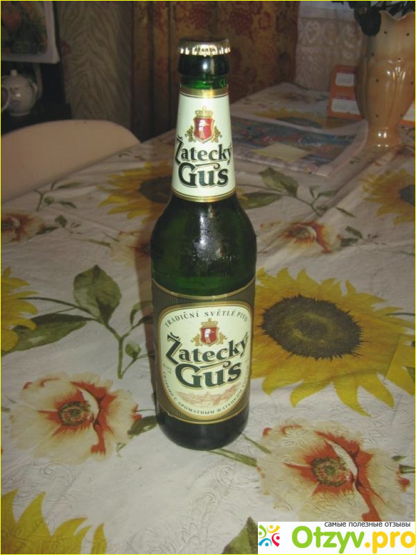 Недавно увидела в магазине пиво с интересным названием "Жатецкий гусь" (транслит). Привлекает оно лишь афишей и сниженной ценой в супермаркете. Как заявлено производителем, имеет чешское происхождение благодаря хмелю в своем составе, который выращен в чешском городе "Жатец", отсюда и название.