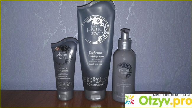 В линейке "Глубокое очищение" представлено три средства: скраб для тела, средство для умывания и маска-пленка для лица.