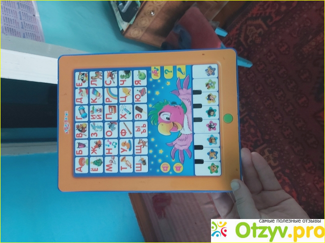 Планшет детский обучающий Азбукварик уже не первый такой планшет у моего ребенка. Егокорпус пластиковый, его внутренняя начинка вполне компактна. Поэтому планшет легкиц и ребёнку не тяжело его держать.