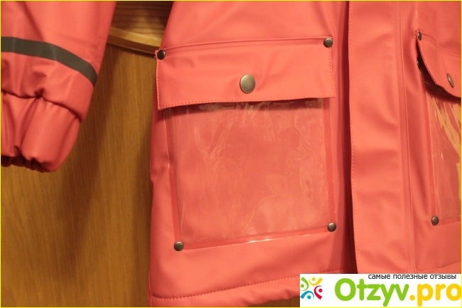 Есть два кармана. Почему-то их сделали прозрачными. Наверное, взрослому человеку ходить с прозрачными карманами было бы неудобно, а для детей самое-то. Мама и папа будут видеть не подобрал ли малыш на улице, что лишнее.