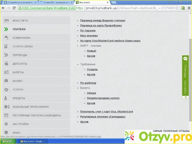 Если говорить о Приват 24, то надо отдать должное разработчикам этой системы. Думаю, что именно благодаря наличию этого сервиса банк значительно расширил число своих клиентов. Во всяком случае, если возникает необходимость перевода денег или оплаты различных услуг, то сделать это можно легко без посещения банка, просто не выходя из дома.